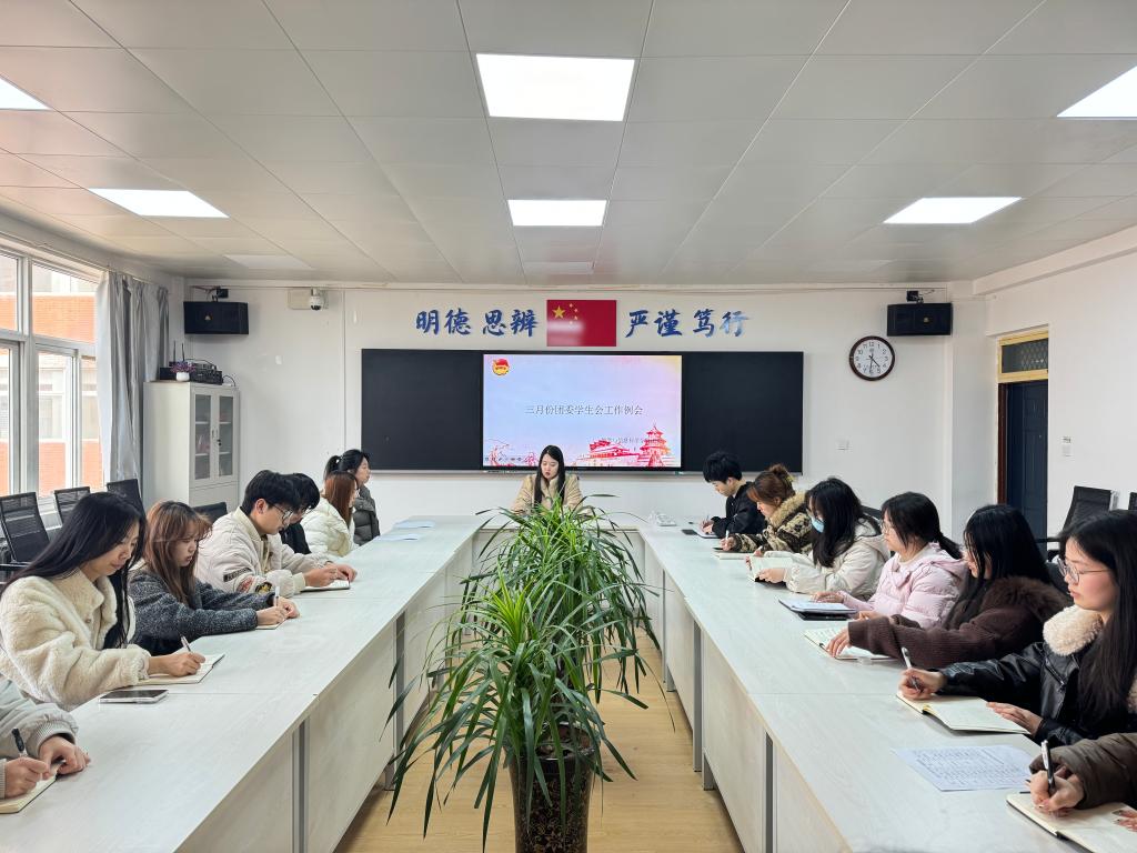 3月4日下午,学院在思贤楼424召开团委学生会三月份工作例会。会议由学院团委书记刘静雅主持。