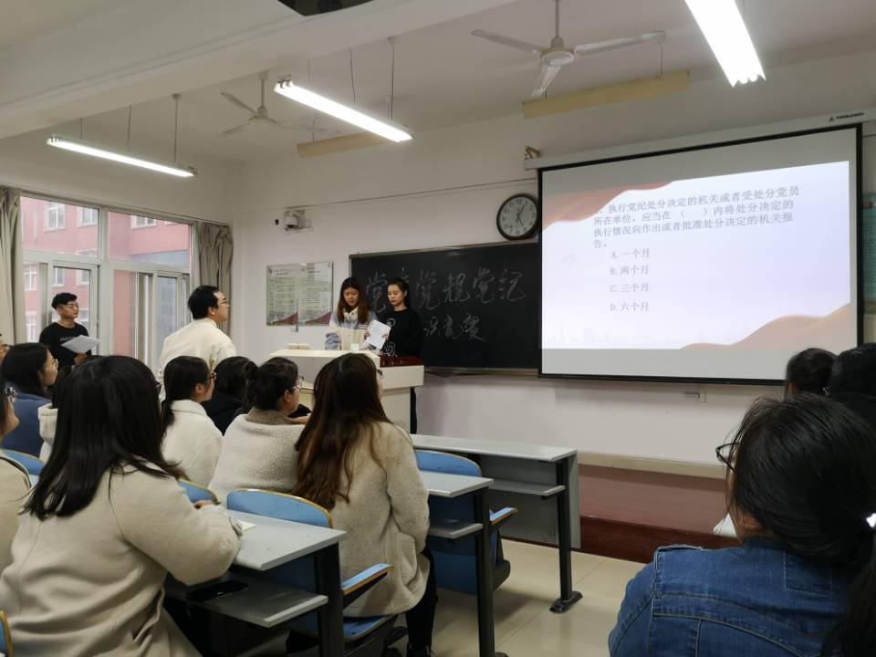 为深入开展”不忘初心、牢记使命“主题教育,增强学生党员学习、尊崇、遵守党章和党纪党规的自觉性,做到明规矩、知敬畏、存戒惧、守纪律。公海5500线路检测学生党支部于2019年11月6日16:30在思贤楼425教室开展了党规党纪党章知识竞赛活动。党委副书记王欢、学生第一、二党支部书记刘瑞、张文婧、全体学生党员参加了本次竞赛。