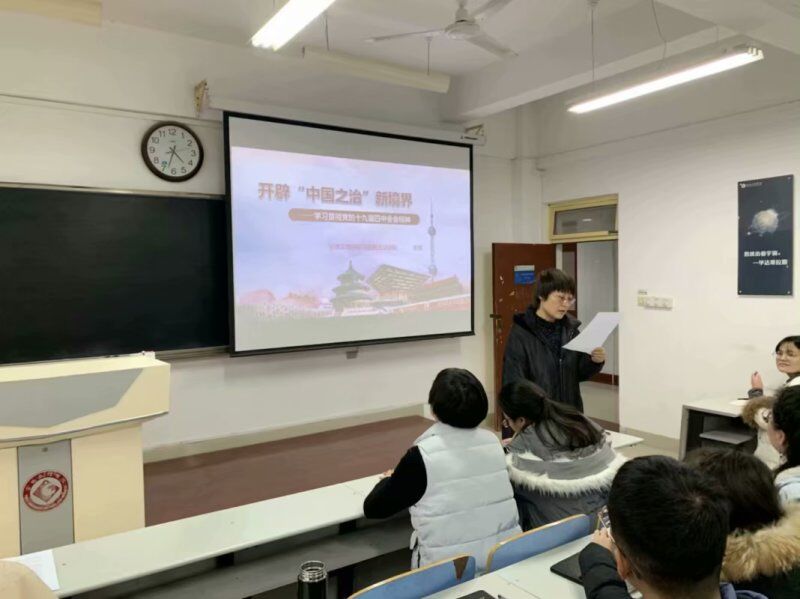 12月25日下午,公海5500线路检测在思贤楼425教室举办了党的十九届四中全会精神学习报告会。校宣讲团成员马克思主义学院张丽老师应邀为全体学生党员、部分入党积极分子作了题为《开辟“中国之治”新境界》的专题报告,报告会由副书记王欢主持。