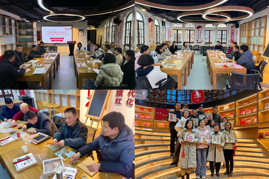 读书分享中,来自民进、九三学社等单位的4名教师代表分享读书感悟,内容丰富、内涵深厚,引发现场师生共鸣。活动中,全体人员参与非遗竹编画制作,在体验传统技艺的同时,凝聚团结协作力量。