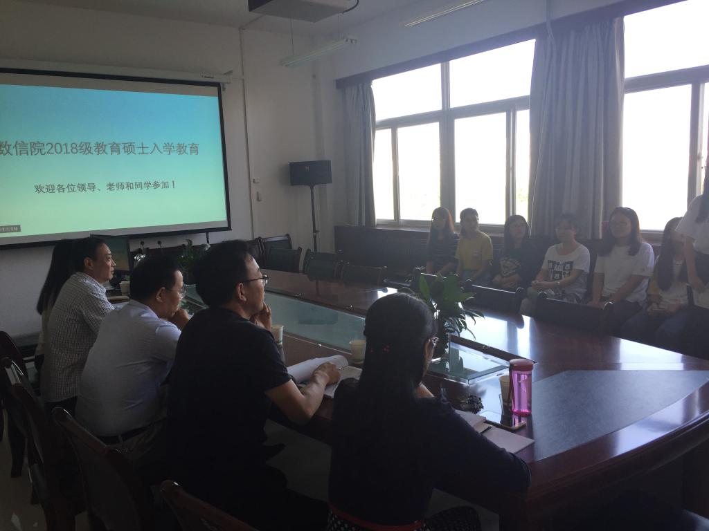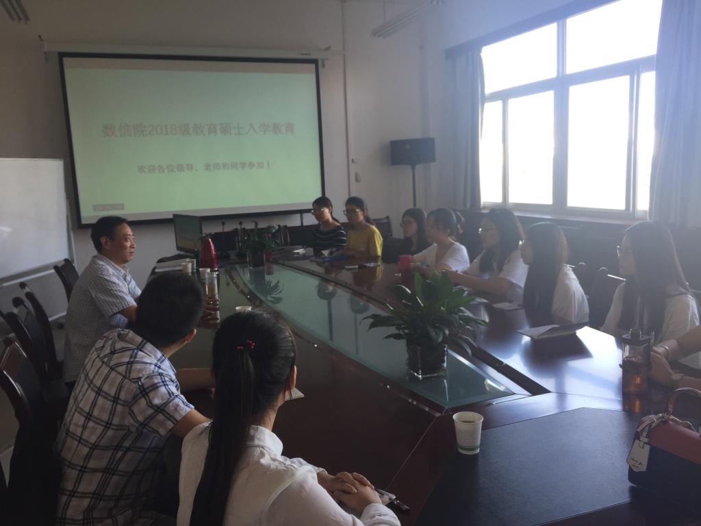 新生教育专题会首先由学院科研副院长杜红珍欢迎研究生开始进入了新的学习阶段,向大家介绍参会的领导和老师,并分别让学生进行自我介绍,让学生与老师相互的认识和了解,拉近师生的距离。学研处处长、研究生导师赵天绪对教育硕士的学习时间轴、学位论文的写作等进行了详细的解释,并对研究生提出学业上的要求,让新生对整个研究生学习阶段有了全面的了解。学院党总支书记郝满义开展了思想道德教育,结合国内外实际案例,对学生进行爱国教育和学习生活上的教育。学院教学副院长刘淳安从数信院的历史沿革、专业建设、师资队伍、专业特色等方面做了精彩的讲话,同时对学生的研究生学习过程提出了具有指导意义的建议。最后,学院科研副院长王爱丽就研究生培养方案、培养计划、实践教学等研究生的制度开展教育,针对研究生学习过程中的一些关键节点做了详细的说明,为新生更好的展开研究生生活打好了基础。