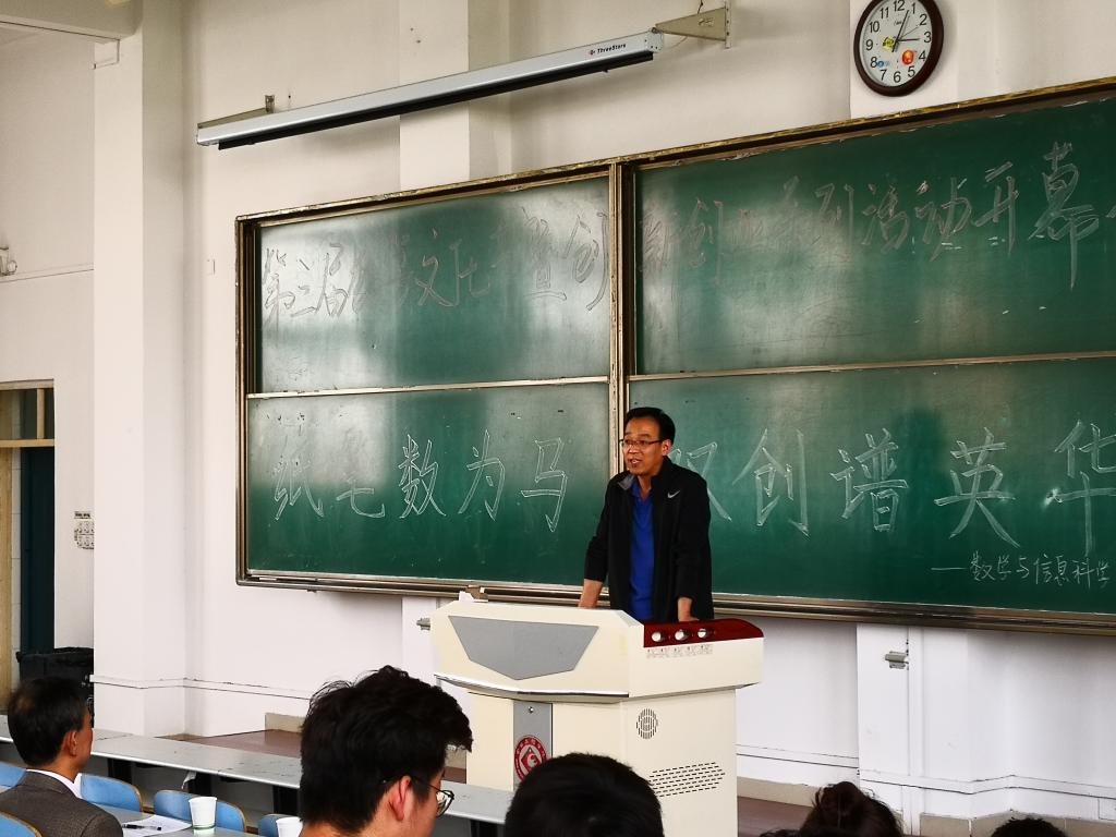 开幕式上,田延峰处长为我院获批的创新创业团队授牌。刘淳安围绕本届数学文化节暨创新创业系列活动的主题——“纸笔数为马,双创谱英华”对本届活动中“三笔字竞赛、趣味数学知识竞赛、考研经验交流咨询、奔跑吧数学及大型数学文化与创新创业宣传展板”5个板块做了详细介绍,并对创新创业团队提出了三点要求:一是要加强对学生创新创业教育的重视和引导,二是要关注并引导学生积极参与创新创业活动,三是要借助创新创业团队平台,结合学校特色,更好的服务地方经济建设;同时向全校师生发出邀请,希望我校学子能珍惜此次数学文化节暨创新创业系列活动的机会,积极参与、锻炼自己、展示自己。