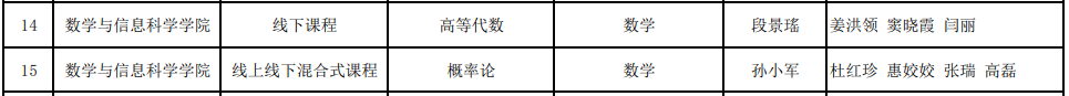 根据《关于开展2022年校级一流本科课程申报工作的通知》精神和有关通知要求,经个人申报、学院推荐、专家评议,学校认定我院《高等代数》《概率论》2门课程为2022年校级一流本科课程。