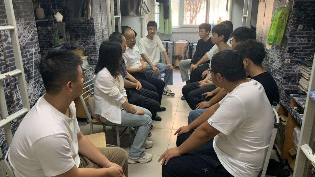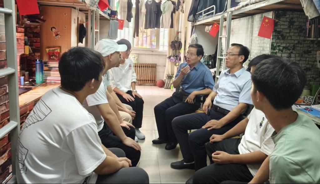 走访活动中,处级干部走访了2号社区辅导员值班室,深入联系宿舍,查看了学生宿舍基础设施,了解了学生生活状况、学业情况、职业规划及对于学校教育管理的意见建议。