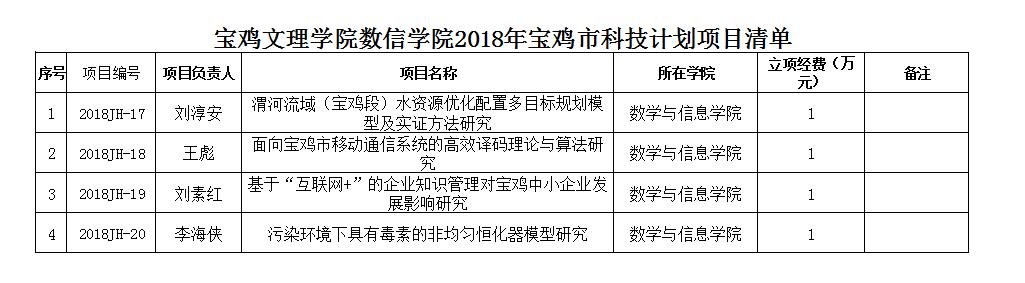 近日,宝鸡市2018年科学技术研究发展计划项目已下达,我院获批四项。具体情况如下: