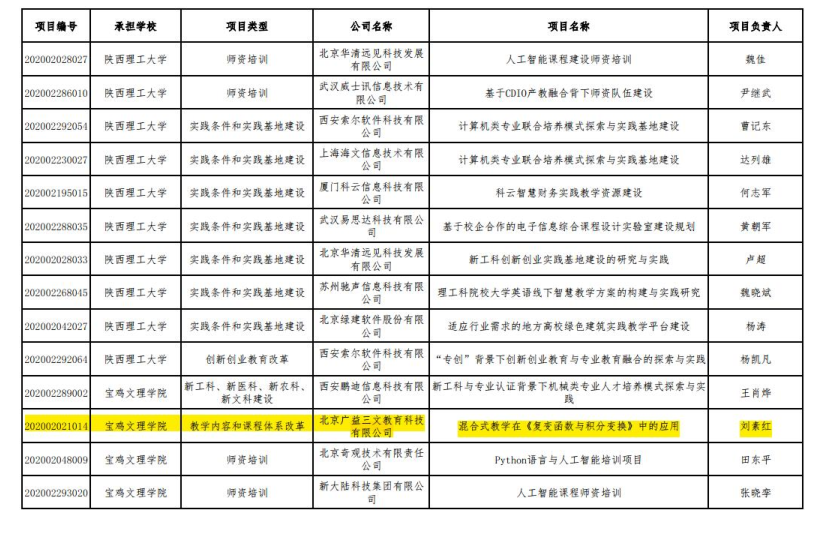 近日,教育部高等教育司公布了2020年教育部产学合作协同育人项目立项名单,我院获批一项。我院刘素红副教授的项目“混合式教学在《复变函数与积分变换》中的应用”获批,立项号:202002021014。