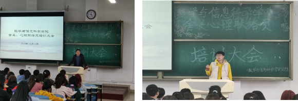刘瑞从心理联络员的工作职责、重要性等方面对心理联络员进行了培训。她要求要求各班心理委员每个星期至少与一个同学进行交流,若发现问题一定要及时上报。安排了2020级新生心理测评工作。最后,刘瑞介绍了学校的心理咨询室和一些放松身体和心理的活动项目,如脑电波、沙盘、按摩椅等,强调了心理咨询室的地点以及联系电话。
