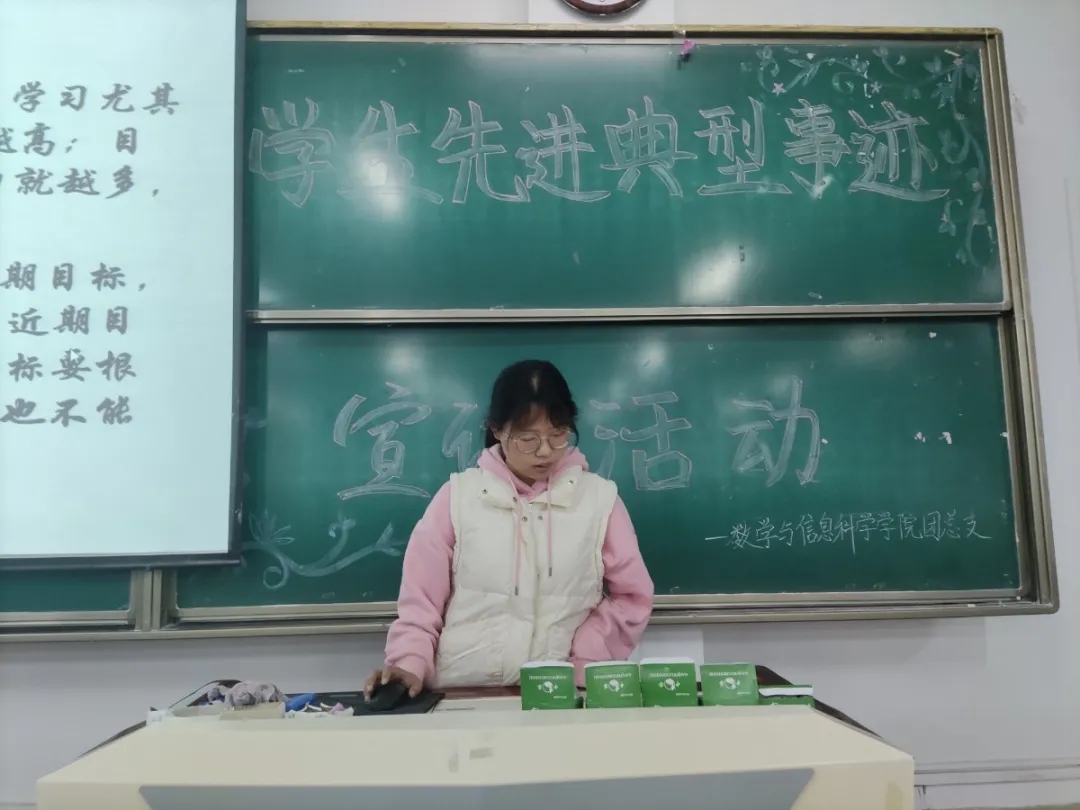 公海5500线路检测于4月13日晚19:30邀请学生优秀事迹宣讲报告团成员杨欢、徐珊珊、陈柯蓉同学,在思贤楼420教室开展以"树典型,学榜样”为主题的学生先进事迹宣讲活动。我院部分学生干部、学生代表参加了此次活动。