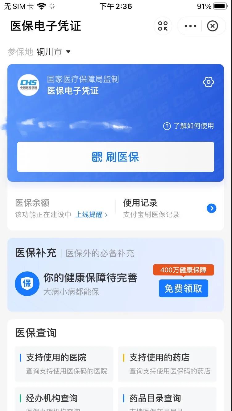 4. 认证成功后即会出现医保电子卡,可点击“刷医保”,即可使用