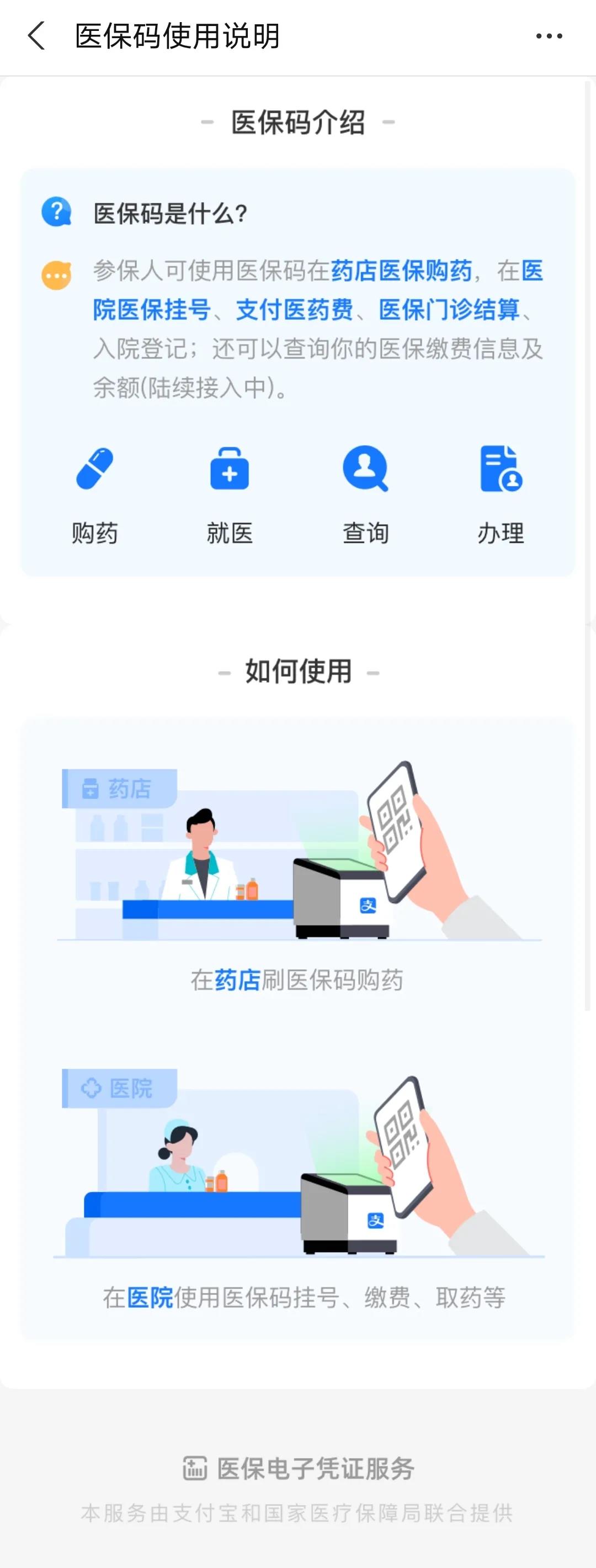 2020年起,全国陆续推广使用医保电子凭证,医保电子凭证具有身份凭证、信息记录、自助查询、医保结算、缴费及待遇领取、办理医保业务等功能,有参保缴费记录的学生可直接通过国家医保App、微信、支付宝等软件开通医保电子凭证(后附“支付宝医保电子凭证申请流程”简介)。今年在宝鸡地区参保缴费(含在校统一参保)的学生在校医院门诊就医时使用医保电子凭证可直接刷码享受医保待遇。