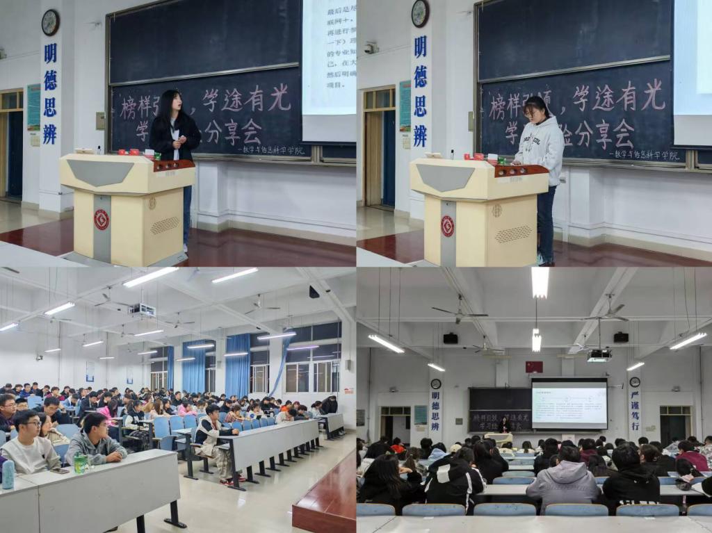 活动现场座无虚席,学生们激情澎湃,期待着两位优秀学生代表的到来。郭欢从整理笔记、课后巩固、备考策略等多个方面向大家阐述自己的经验和心得,并且鼓励大家积极参加学科竞赛。张利欣则是从学习动力、课后练习、抓住时代机遇向大家讲述了学习的方法和方向,同时鼓励大家在实践中提升自我。在本次分享会中,她们将自己的学习经验倾囊相授,演讲结束后,同学们以热烈的掌声感谢两位学生的分享。