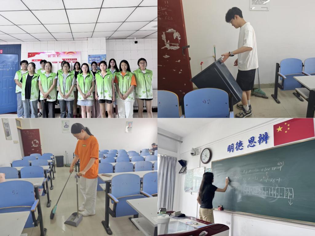 活动伊始,负责人对各个教室进行详细分工,确保每个教室责任到人。分工完毕后,学生们迅速行动起来,以饱满的热情投入到劳动中。他们手持扫帚、拖把,认真打扫地面,对垃圾桶进行全面的清理。学生们细致擦拭玻璃和窗框,确保每一处都清洁到位,用水打湿抹布擦黑板,使黑板光亮如新,并将板槽的粉笔灰进行处理,清洁了讲台内的杂物,让讲台恢复整洁。经过大家的共同努力,教室面貌焕然一新,清新整洁的环境有效缓解了高温带来的燥热感,为学生们营造出了更加舒适宜人的学习环境。