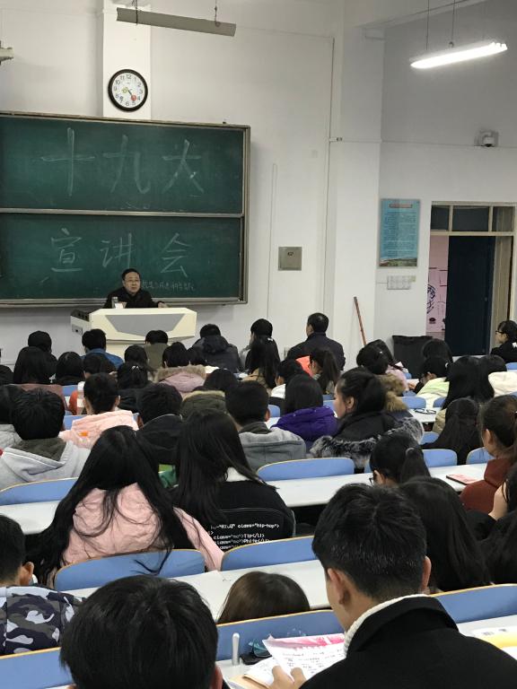 12月13日下午,公海5500线路检测在思贤楼420教室举办党的十九大精神宣讲会。本次宣讲会特邀我校党的十九大精神党委理论讲师团成员,校党委委员,党政办公室主任田延峰主讲,会议由公海5500线路检测党总支书记郝满义主持,公海5500线路检测党总支副书记王欢、全体辅导员、部分教师及部分学生共200余人参加了本次宣讲会。