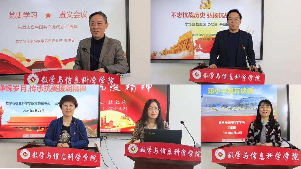为认真贯彻落实习近平总书记在中央党史学习教育动员大会上的重要讲话精神,进一步推进全院党史学习教育深入,开展增强党员干部的责任感和使命感,切实做到学史明理、学史增信、学史崇德、学史力行。4月21日下午,校党委书记赵健在思贤楼424会议室主持召开“感受百年风华 传承伟大精神”党史学习教育成果分享会,学院党政领导参加了此次分享会,分享会以微党课讲授形式进行。