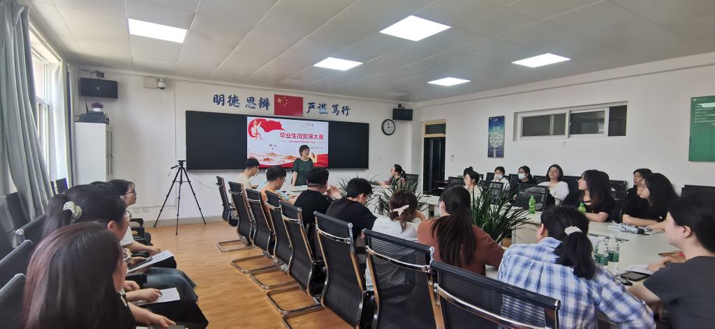 在微党课竞赛中,毕业生党员围绕一个党的知识点,重点讲授党的基本理论和路线方针政策、党章党规党纪、党史党情国情、身边党员的先进事迹等内容,结合自身在校期间的学习、生活、感受等开展微党课的讲解,通过PPT展示、视频教学、互动交流、情景演绎等形式,讲授了一节节主题鲜明内涵丰富的党课,赢得了评委的阵阵掌声。经过评审,学生第二党支部王奕卓、夏佳楠等获4名党员获一等奖,学生第一党支部袁佳瑶等8名党员获二等奖,学生第二党支部丁成杰等16名党员获三等奖,学生第一党支部刘璇等27名党员获优秀奖。