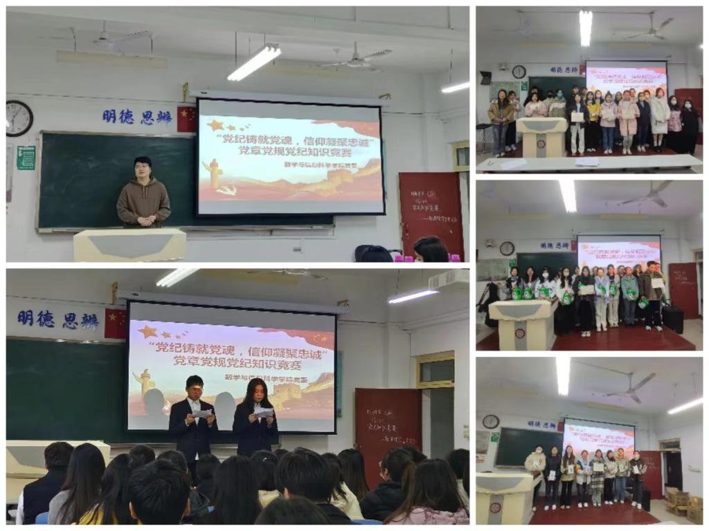 竞赛分初赛和决赛两个阶段进行。竞赛知识涵盖《中国共产党章程》《中国共产党廉洁自律准则》《中国共产党纪律处分条例》等内容。经过初赛笔试的角逐,9支队伍中的6支代表队脱颖而出,晋级决赛。决赛每三支代表队为一组进行必答和抢答,必答题环节参赛代表沉着冷静大家稳扎稳打,抢答题环节又互不相让,精彩迭出,掌声此起彼伏。经过激烈的角逐“红旗飘飘队”反应敏捷,配合默契,最终摘得桂冠;“飞龙在天”等两支队伍获得二等奖;“扬帆起航”等三支队伍获得三等奖。
