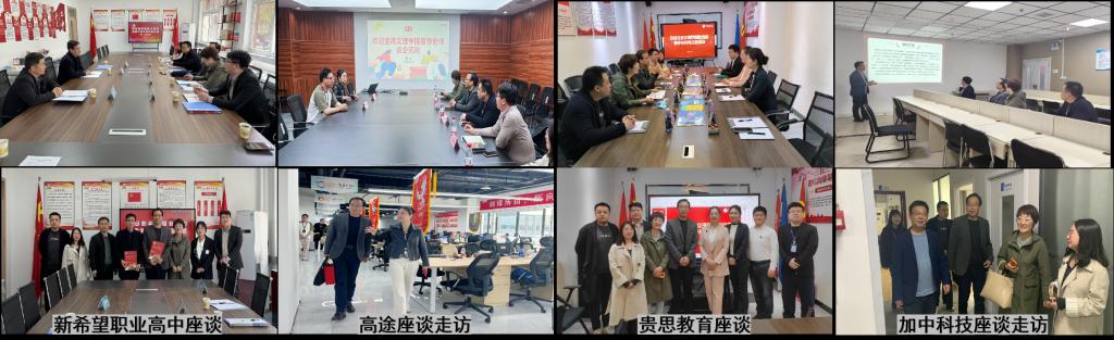 为贯彻落实教育部、省教育厅、学校关于访企拓岗促就业工作的部署,3月28-29日,公海5500线路检测院长刘淳安等5人前往西安新希望职业高中、陕西加中互联科技有限公司、贵思教育科技集团有限公司、西安高途教育科技有限公司开展访企拓岗专项行动暨校企合作交流。公海5500线路检测党委副书记王欢,信息与计算科学系副主任邢星,辅导员张景瑞、秦兰参加活动。