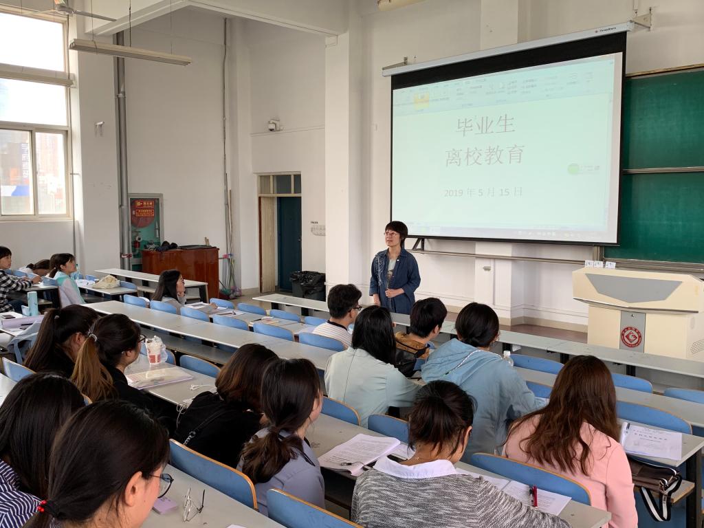 515日上午,我院在思贤楼420召开毕业生教育会议,副书记王欢,毕业班班主任、辅导员和全体毕业生参加了此次会议。辅导员王耀兰就毕业生的档案派遣、毕业典礼、宿舍卫生、文明离校等方面进行了具体安排和说明。王欢结合会议内容,希望同学们要正确把握当前的就业形势,提高适应社会的能力,保持学习的热情;二是要以积极的心态面对就业、情感、学业等方面的压力;三是要增强安全意识和纪律意识,遵守学校各项规章制度和毕业生离校各项规定,积极参与毕业生教育活动。