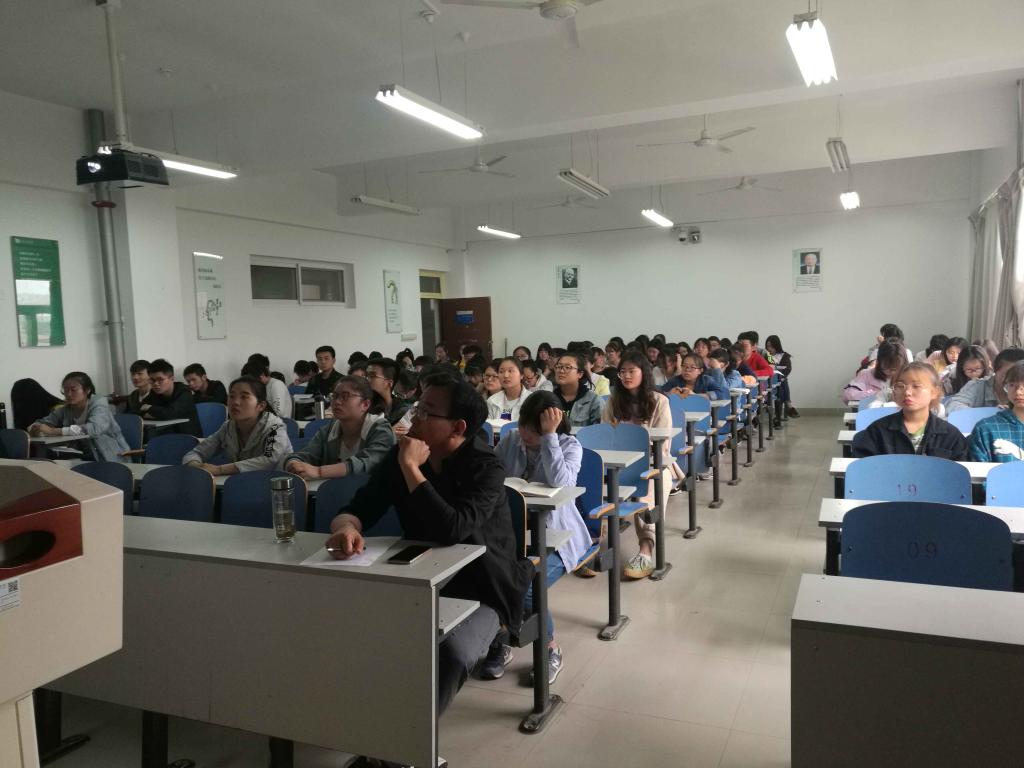 讲座题目为《从几个案例看数学核心素养的培养》,齐老师从理论上讲解了数学学科的核心素养的提出,以及核心素养在教学中的重要性,并结合教学案例进一步讲解核心素养的培养。齐老师运用板书和多媒体结合的方式,语言表达通俗易懂,讲课深入浅出,徐徐善诱,引导学生一步步进行思考,现场与学生互动良好,受到学生老师好评,讲座效果良好。