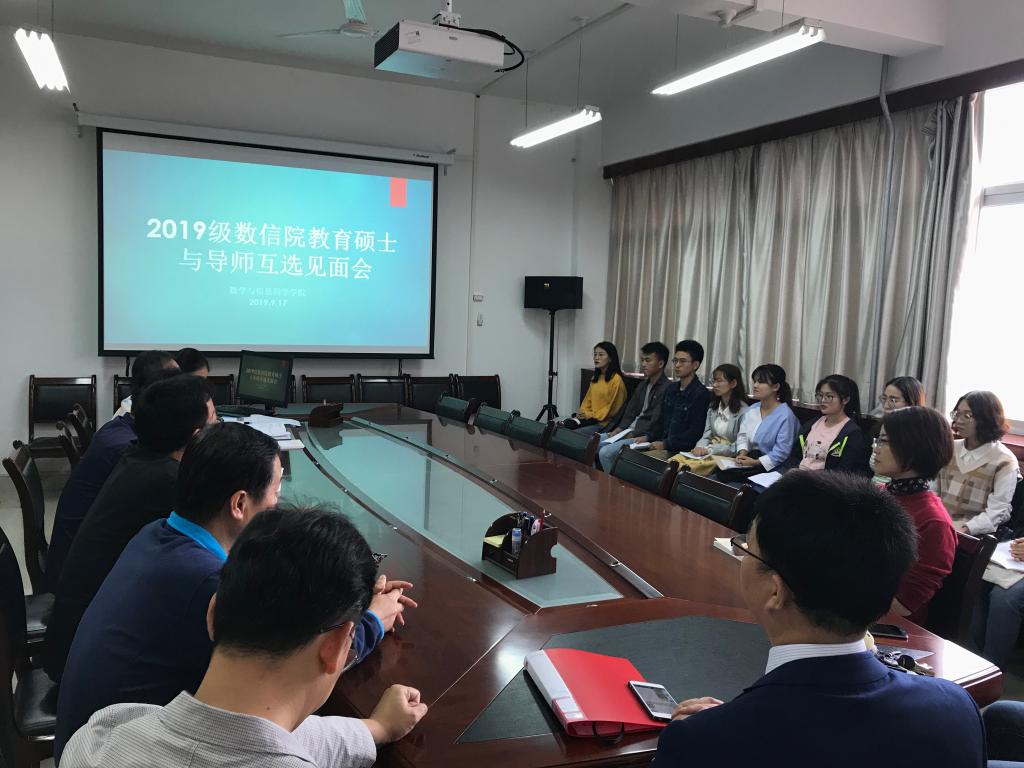 2019年9月17日下午与9月18日下午,公海5500线路检测2019级教育硕士与学术型硕士分别进行了导师见面会并圆满完成了师生互选工作。本院书记郝满义、院长刘淳安、专硕与学硕导师及2019级硕士研究生参加了互选见面会,本次会议由副院长王爱丽主持。