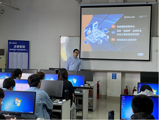 比赛当天,陕西文都智链计算机有限公司金牌讲师给学生做项目展示的最后指导,陕西微软创新中心倪真总工程师作了题为《企业级项目及微软人工智能应用》报告。比赛中各个项目小组积极展示成果并进行了精彩的讲解。经过评委打分提问,最后评出优秀团队1个,个人一、二、三等奖各1项。