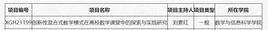 根据《关于公布省高等教育学会2021年度高等教育科学研究项目立项结果的通知》(陕高学会〔2021〕13号)精神,陕西省高等教育学会发布了高等教育科学研究项目立项名单,我校共获批6项一般项目,其中我院获批1项。高等教育科学研究项目旨在促进高等教育改革,深入开展高等教育理论研究及实践创新,推动高等教育内涵建设和高质量发展。