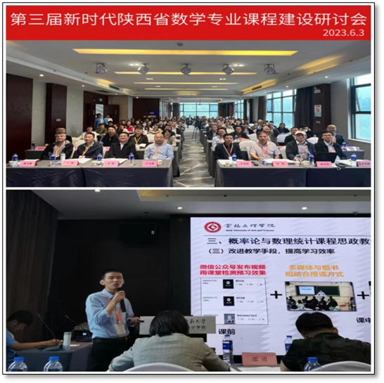 6月2日-3日,第三届新时代陕西省数学专业课程建设研讨会在西安举行,省内外国家级教学名师等150余人参加了此次会议。我院王亚强副教授受邀作了题为“浅谈地方高校《概率论与数理统计》课程建设”的教研报告。