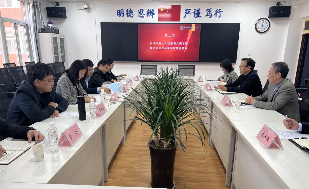 10月26日上午,渭南师范学院数学与统计学院陈斌院长一行6人来我校公海5500线路检测交流访问。公海5500线路检测党总支书记郝满义,院长刘淳安,副院长杜红珍、姜洪领及各系系主任、专业负责人等在会议室与陈斌一行进行了座谈。