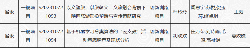 近日,教育部、省教育厅分别公布了2023年国家级、省级大学生创新创业训练计划项目立项结果。我院2个项目获批国家级立项,4个项目获批省级立项。