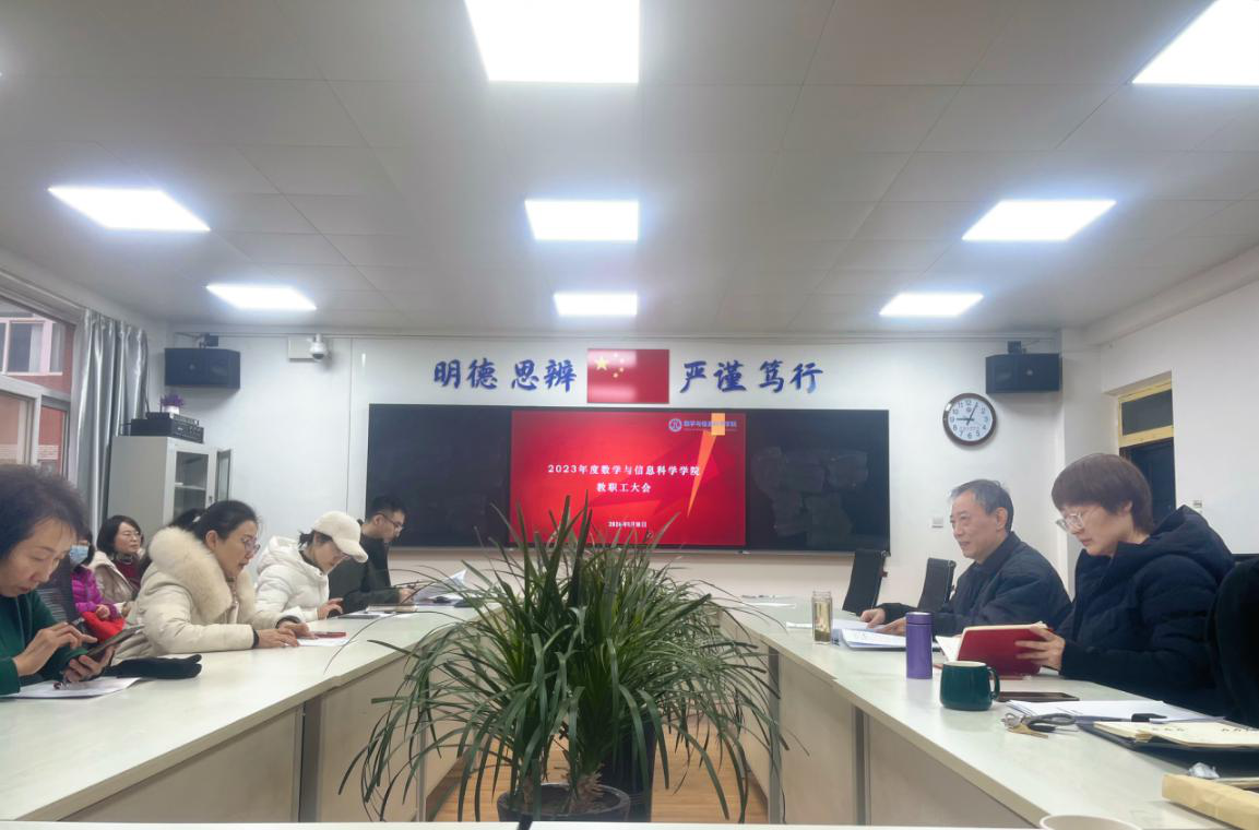 刘淳安在报告中指出,2023年是我院“十四五”发展承上启下的攻坚之年,学院党政领导齐心协力,锐意进取,以党的二十大精神和习近平新时代中国特色社会主义思想为指导,全面贯彻落实党的教育方针,以高质量发展为主题,深刻认识和准确把握高等教育改革发展的新形势、新任务,积极应对地方经济、社会对基础学科(数学)人才的需求,坚持“优化结构、突出重点、注重创新、协同推进”。在全面分析当前存在问题和面临困难的基础上,他提出了2024年主要工作:一是深入贯彻学习党的二十大精神,持续加强思想政治引领;二是坚持立德树人根本任务,提高教育教学质量;三是保持学科建设龙头地位,助力我校更名大学工作;四是强化人才队伍建设,优化教师队伍职称结构;五是完善学院管理制度,规范教学质量闭环评价体系;六是加强教育教学实践,培养学生爱国主义情怀;七是积极引导稳就业,提升学院考研率和就业率。他希望全院教职工积极寻求最大公约数,画出最大同心圆,汇聚一起,团结一心做教育,群策群力促发展。