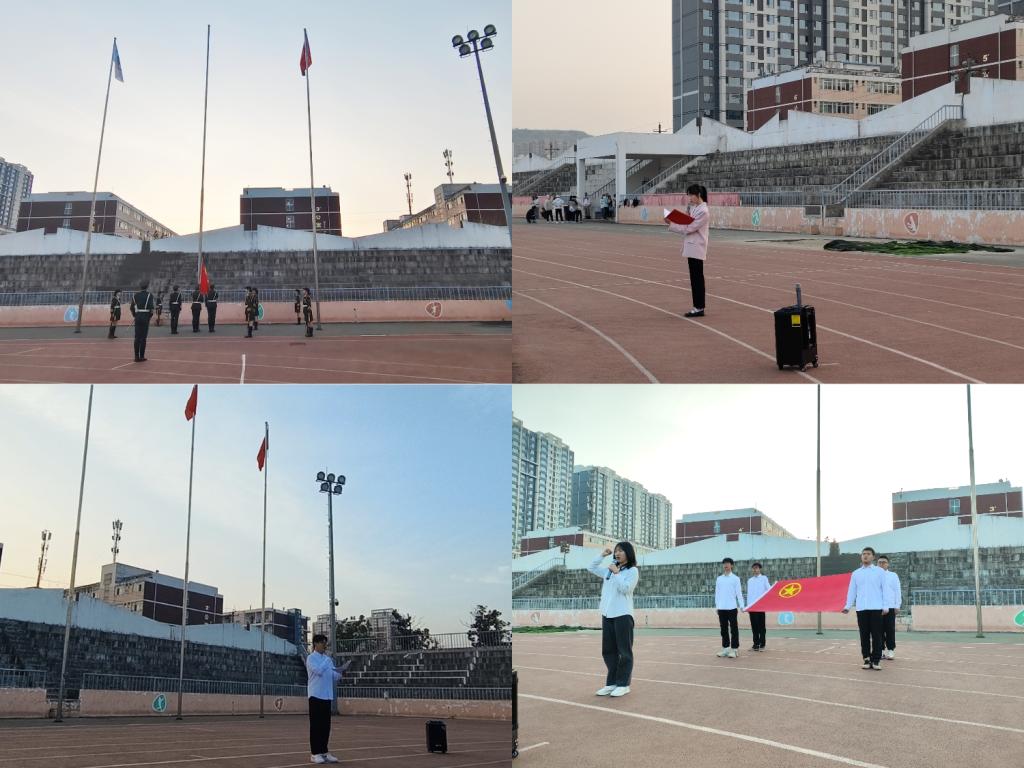 早上六点四十分,升国旗仪式正式开始。国旗护卫队迈着整齐有力的步伐,护送鲜艳的五星红旗走向升旗台。伴随着激昂的国歌,五星红旗在朝阳中冉冉升起,全体师生庄严肃立,向国旗行注目礼。这一刻,同学们心中充满了对祖国的热爱和敬意。升国旗仪式结束后,2022-2023学年度“国家奖学金”获得者、2021级统计二班苏悦做了题为《奋斗以恒,笃行不怠》的国旗下演讲,号召全体同学坚定理想信念,把爱国主义情感化为前行的动力,努力学习专业知识,提升专业技能,不断超越自我,勇担新时代赋予青年的历史使命,为国家的繁荣富强贡献自己的力量。2022级信息与计算机科学二班郭洪铸以《不朽》为题进行了朗诵,希望同学们能够继承革命先辈遗志,庚续红色革命精神,坚定不移听党话、跟党走,不负韶华,砥砺前行。李萍以《缅怀先烈,献礼青春》为题讲授了主题微团课,希望同学们牢记革命先烈的英勇事迹,传承学习他们的革命精神,将向革命先烈致敬、学习的精神转化为实际行动,积极投身到国家和人民的事业中去,为实现中华民族伟大复兴的中国梦贡献自己的力量。最后,由团员代表郭欢领誓,全体团员青年重温入团誓词。
