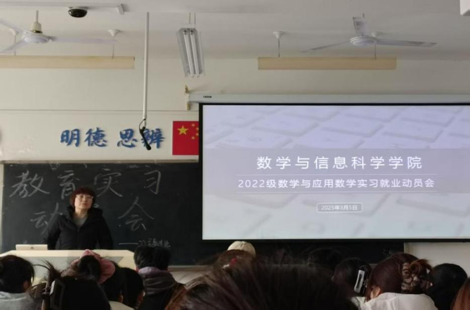 2025年3月5日,公海5500线路检测于思贤楼426教室召开2025年教育实习动员大会。数信学院党委副书记王欢、副院长杜红珍、辅导员张景瑞,实习带队教师安海龙以及2022级数学与应用数学专业全体学生齐聚一堂,共同开启教育实习的重要篇章。