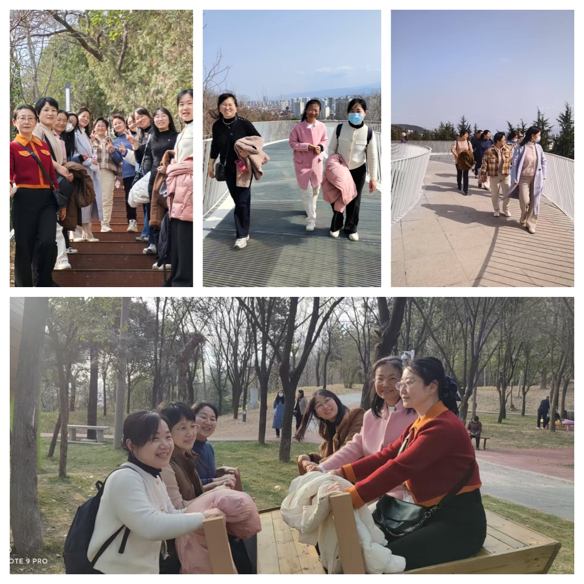 春日的郊外,风景如画,微风轻拂。女教职工们怀揣着喜悦的心情,沿着精心规划的路线出发,三五成行,有说有笑,穿梭于自然美景中,共同踏上春日健走之旅。