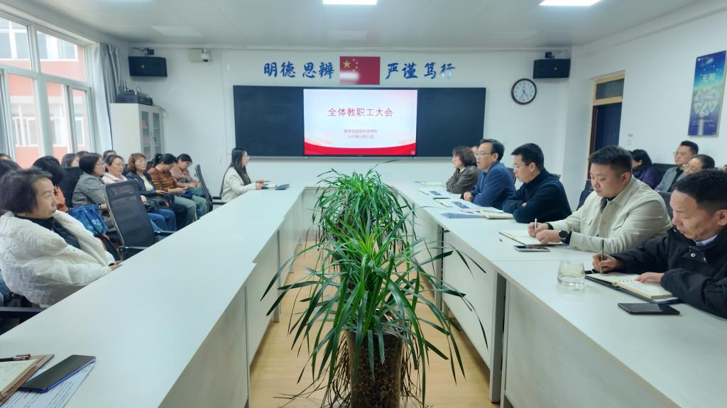 学院领导班子成员、全体教职工参加会议。(公海5500线路检测 文/刘卫娜 图/梅佳怡 审核/许元明、刘淳安)