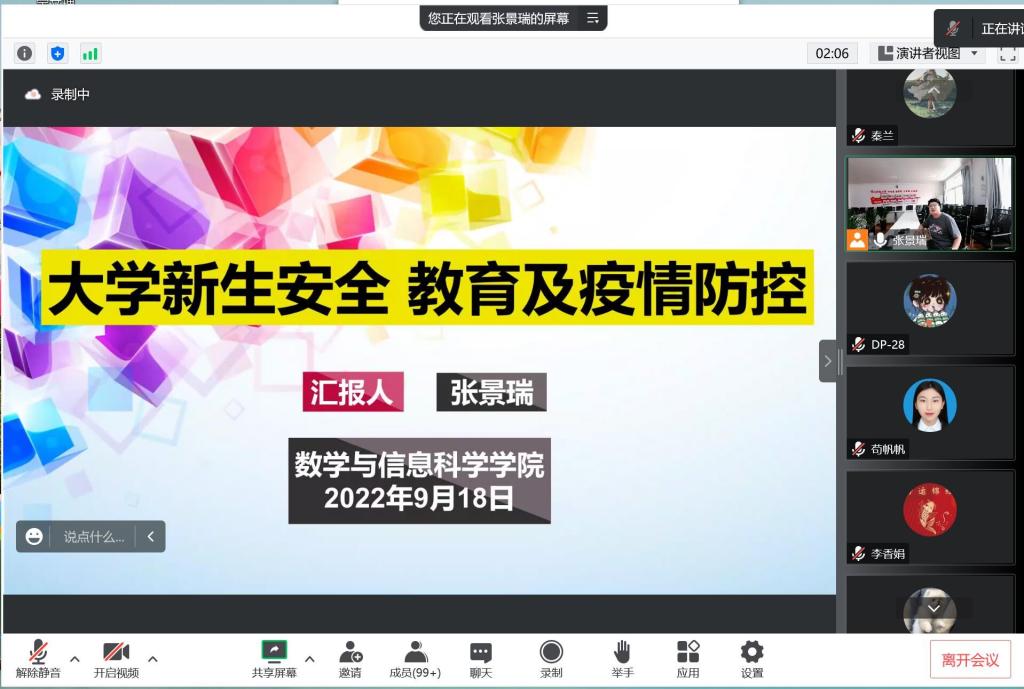 为帮助新生熟悉大学生活,克服入学焦虑,增强自我管理与自我教育意识,9月15日至9月18日,公海5500线路检测通过线上会议平台,统筹疫情防控,聚焦新生需求,开展了内容详实、主题鲜明的2022级新生线上入学教育系列活动。