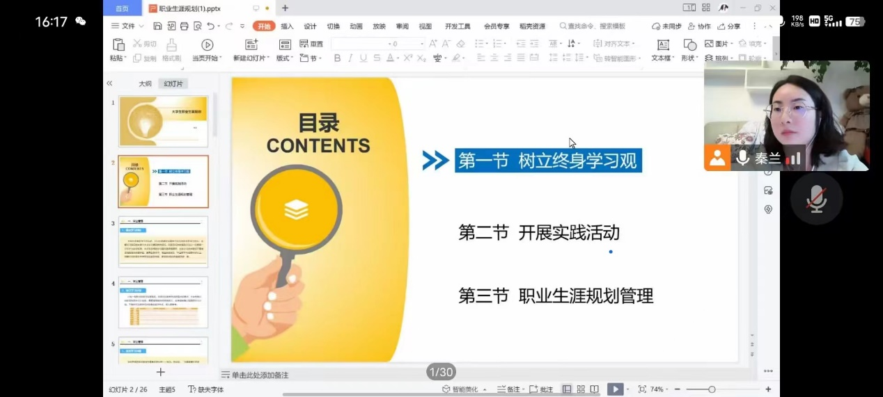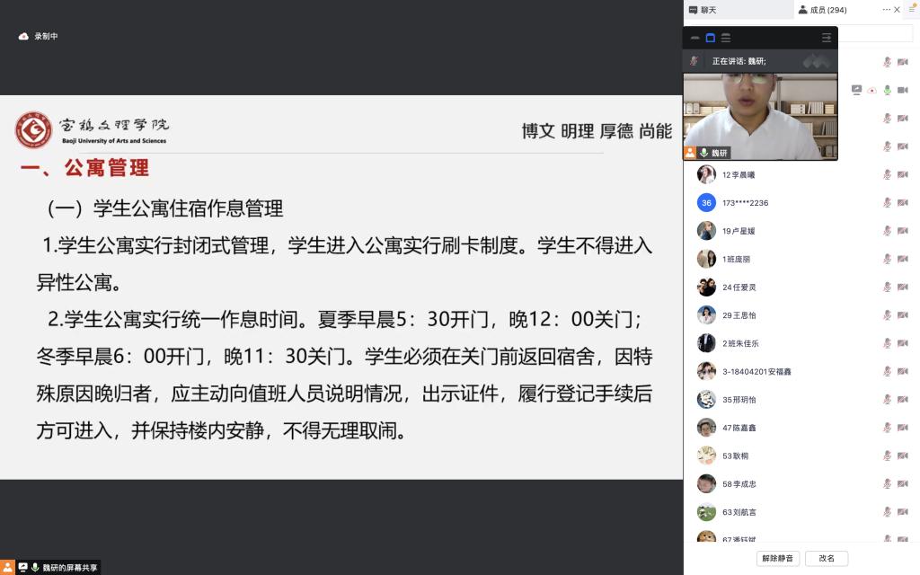 9月15日下午,2022级研究生“云端”见面会拉开了本次入学教育活动的序幕。研究生秘书樊玥、辅导员秦兰分别向2022级研究生讲解了学院专业和导师概况,帮助新生初步了解我院科研情况与师资力量,为接下来的“导师互选”打好基础。