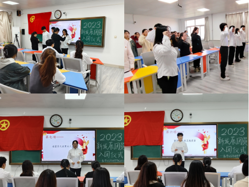 入团仪式在雄壮的国歌声中拉开帷幕,李萍宣读了新发展团员名单,随后与张文婧一起为三名新团员颁发、佩戴团徽。由团总支副书记王梓涵领誓,新老团员面向鲜艳的共青团团旗进行了庄严的宣誓。随后,入团介绍人代表闫子厚宣读《团章》中有关团员的义务和权利的条款,使各位团员对其内容有了更深刻的了解。新团员代表王旭讲述了自己对共青团的认识和感受,并郑重承诺将在以后学习、生活中努力践行团员义务,接受团组织的考验与考察,立志做一名谦虚、积极进取的好团员。老团员代表贾未天讲述了自己加入共青团的体会和成长经历,并对新团员的发展提出了一些建议。最后,张文婧祝贺各位新团员的加入,并对新团员提出了要求,希望新团员发挥模范带头作用,积极履行团员义务。入团仪式在全场人员齐唱团歌声中圆满结束。