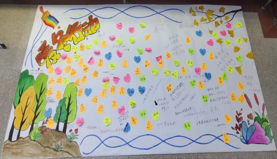 活动结束,学生们汇聚一起,分享心得、畅谈体会,手写心愿贴,张贴心愿板,送出2023年第一份冬季祝福,许下美好期待。