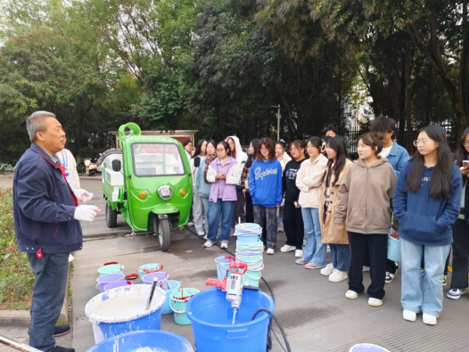 活动现场,学生们将生石灰、水、食盐、农药按照比例调配后充分搅拌均匀后,三人一组统一涂抹于校园树干上,给我院区域内的行道树和各处绿化带的树木陆续穿上了“冬日防护衣”。