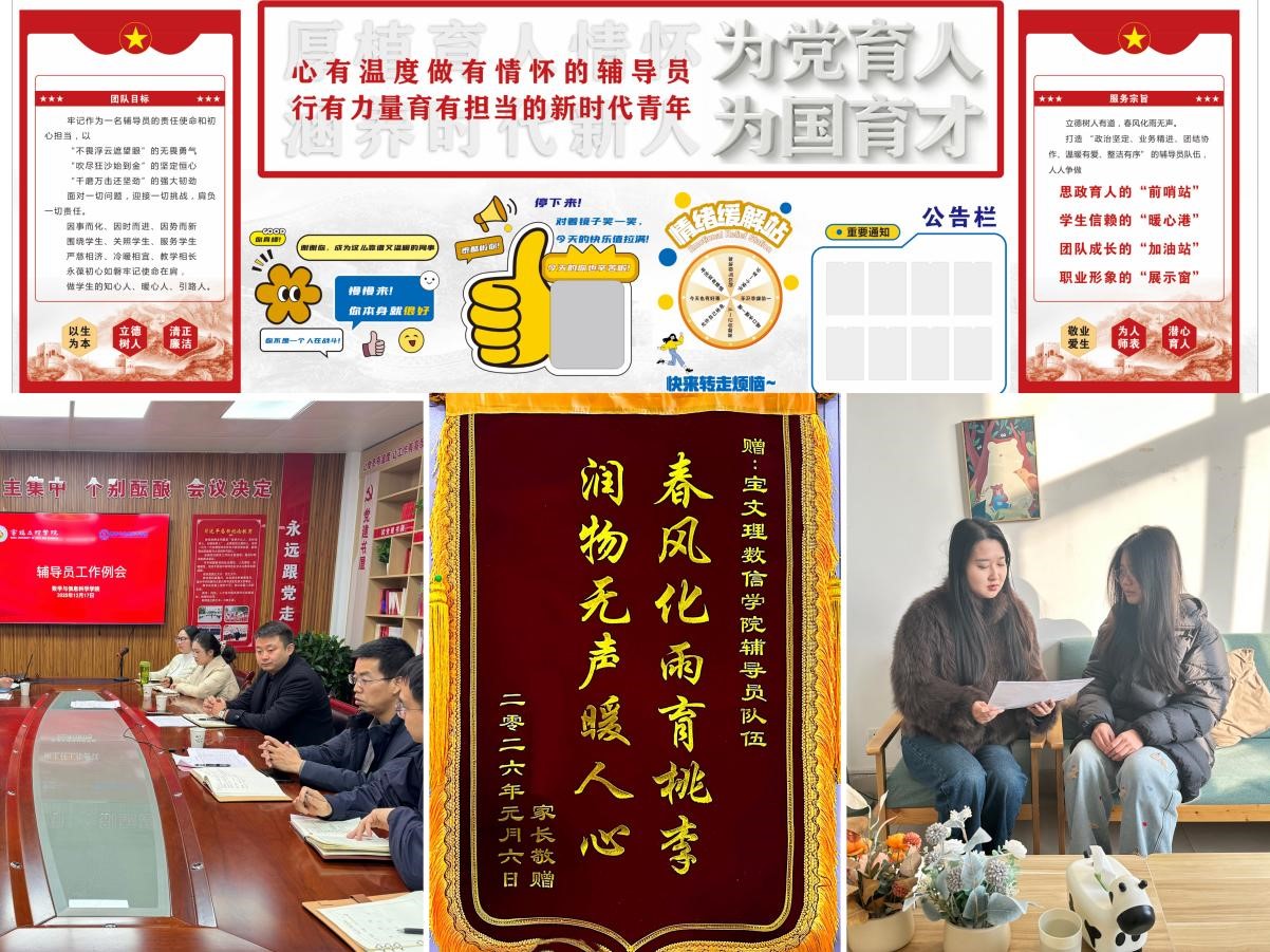 精心开展培训,不断夯实辅导员队伍根基。坚持把辅导员队伍建设作为提升育人实效的关键支撑,以科级干部调整为契机,选优配强优化队伍结构,提升任职综合能力。结合党建任务落实,人人参与到具体任务和活动当中压担子、强素质、练内功,定期召开辅导员工作例会,研判学生管理工作实情,开展业务技能和实操培训,持续夯实理论根基,提升专业能力。改造办公室文化墙,营造浓厚育人氛围,提升工作责任感、荣誉感,增强队伍归属感,不断激发内生动力和主动担当意识。