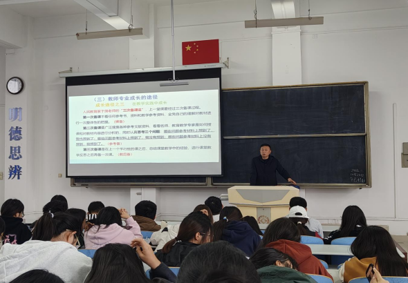 报告会上,李云虎结合自身从教经验,为我们论述了新时代对师范生的新要求以及新时代的师范生该如何成长,分别从名师的成长之路、教师专业成长的必由之路、教师专业的成长途径、真实的数学设计案例等几个方面出发,为师生进行了详细,深刻的讲解,并且对几何画板的运用进行了课堂展示,为同学们提供了一种新的教学思路。他鼓励同学们要多学习,熟练的运用各种教学软件,增加数学课堂的直观性,拓宽自己的视野和认知,培养更好的思维方式和教学能力,报告会主题鲜明,内容丰富,让师范生们深感收获颇丰,受益匪浅。
